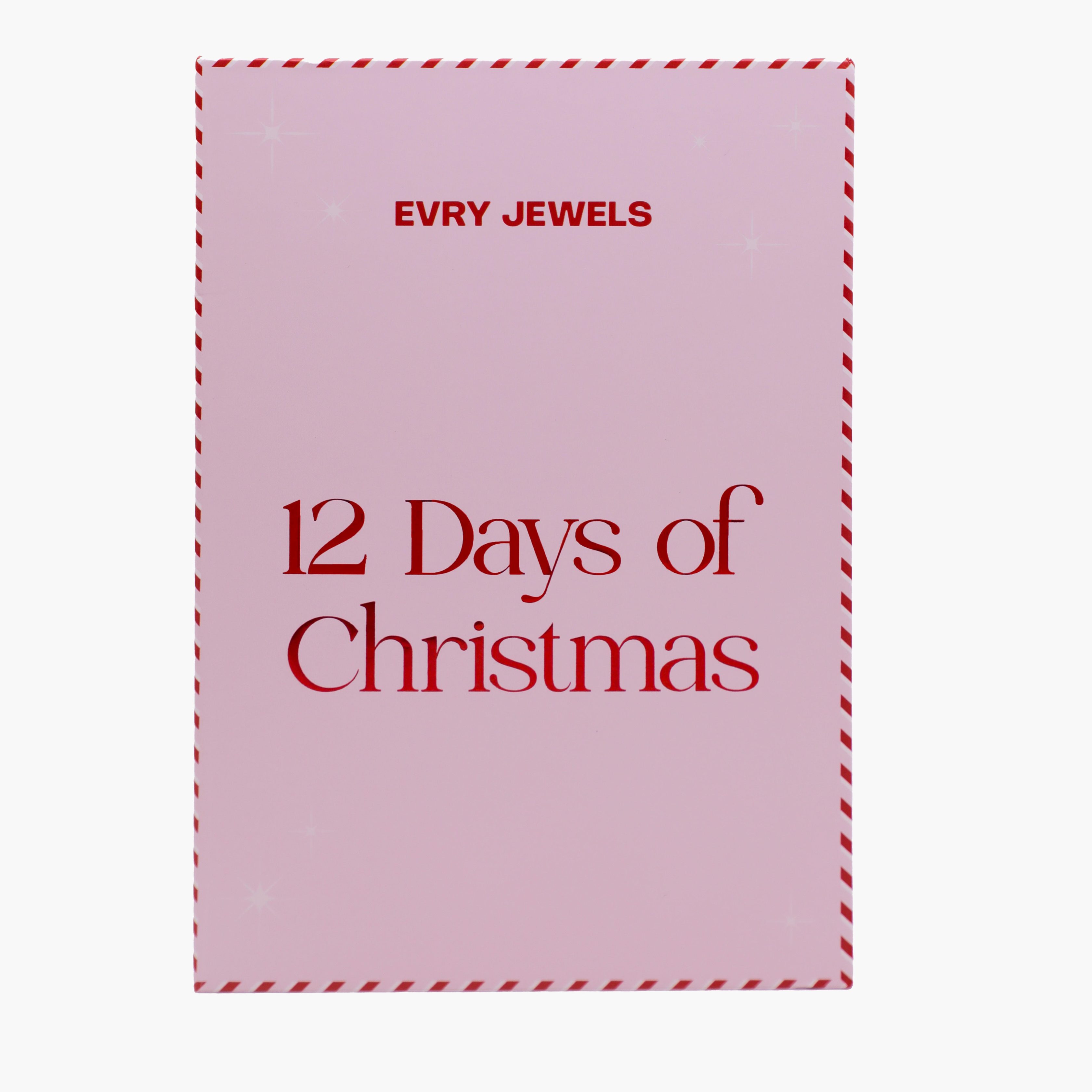 Celebrate the holidays with 12 days of surprise jewelry treasures. Each day reveals a unique Evry Jewels piece – 4 necklaces. 2 pairs of earrings. 2 bracelets. 1 hand chain. and 3 charms – designed to add sparkles to the season. Perfect for gifting or treating yourself.